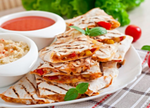 • Arrange the tortillas by placing the cheese and chicken preparation on each tortilla, heat on a comal until the cheese melts.